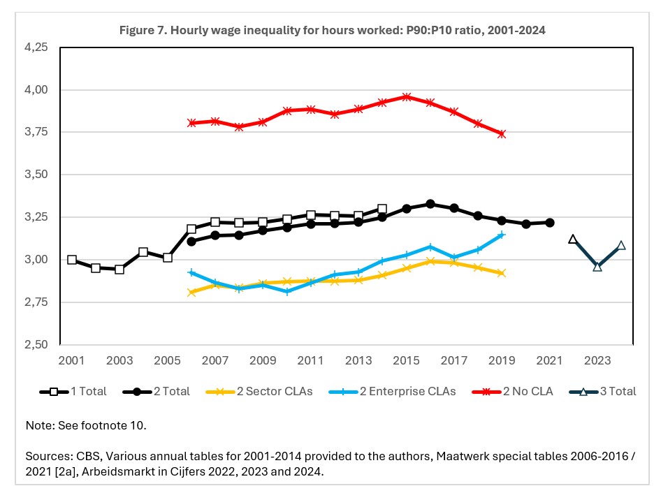 Salverda, W. (2024).“Terwijl CAO-dekking daalt, nemen loonongelijkheid en bestaansonzekerheid toe”. (With declining coverage of collective agreements wage inequality and existential insecurity increase) Economisch-Statistische Berichten, 109 (4833), 23 May, 222–225. 222-225_Salverda.pdf (esb.nu)